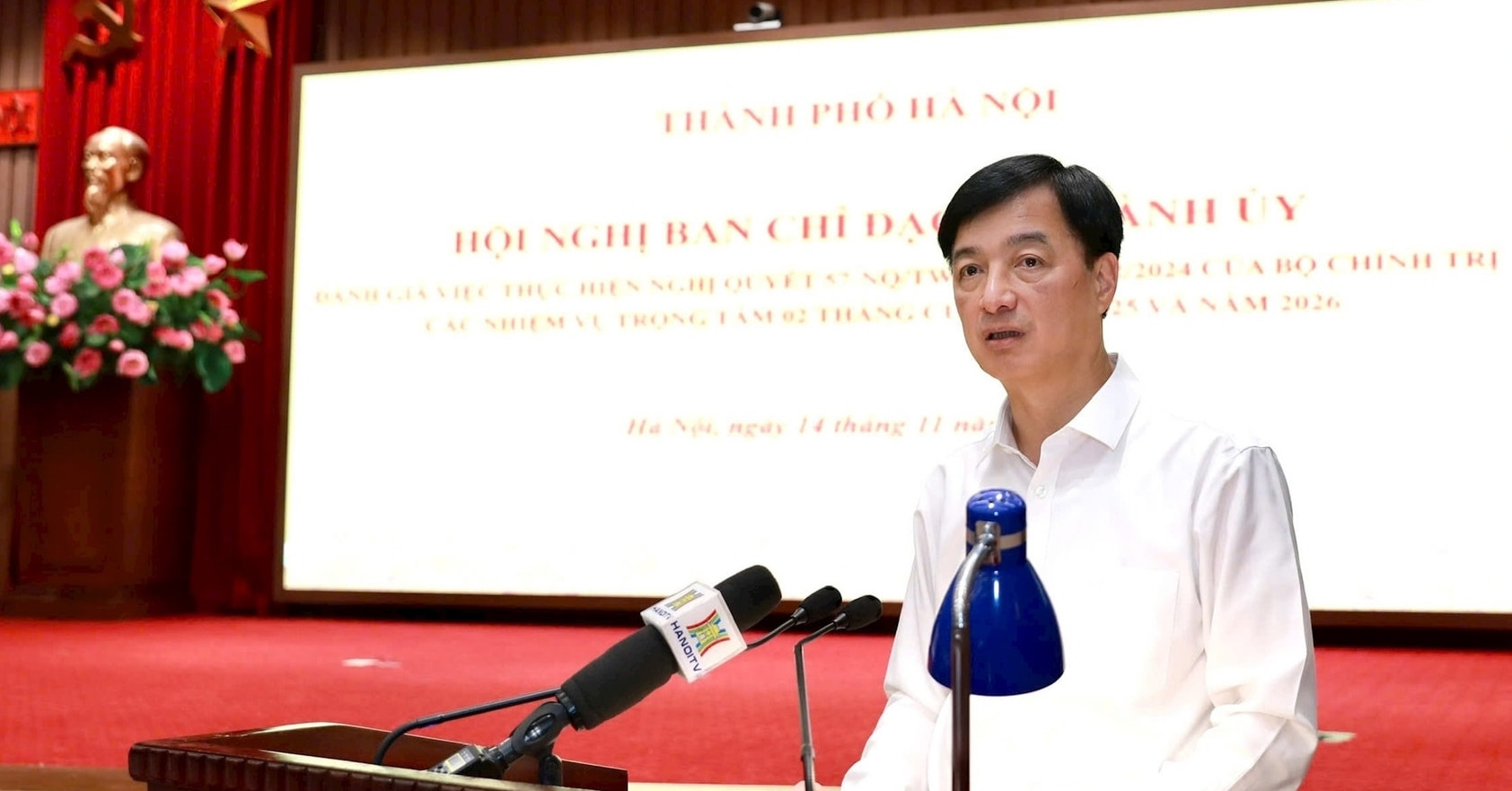 Chiều 14/11, Thành ủy Hà Nội tổ chức Hội nghị Ban Chỉ đạo 57 Thành ủy, đánh giá việc thực hiện Nghị quyết 57-NQ-TW, ngày 22/11/2024 của Bộ Chính trị; các nhiệm vụ trọng tâm 2 tháng cuối năm 2025 và năm 2026. Ông Nguyễn Duy Ngọc, Ủy viên Bộ Chính trị, Bí thư Thành ủy, Trưởng ban Chỉ đạo 57 của Thành ủy Hà Nội chủ trì hội nghị.
