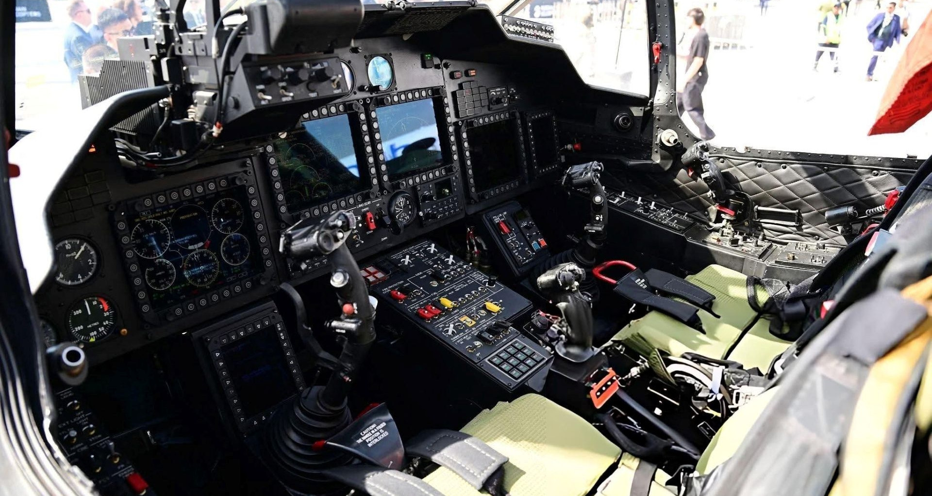 Buồng lái Ka-52E Alligator tại Dubai Airshow 2025. Ảnh: Ban Truyền thông UAC/uavia.su