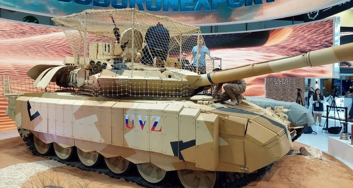 Phiên bản xuất khẩu của xe tăng T-90MS tại triển lãm IDEX 2025 ở UAE. Ảnh: RIA Novosti/Kirill Zykov